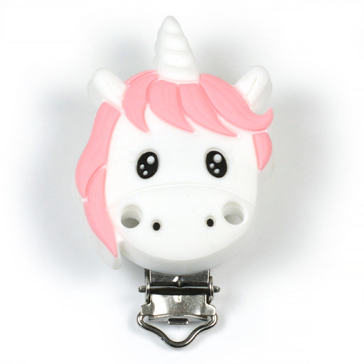 Silikonclips med med motiv enhörning / unicorn.Clipset är i BPA-fri silikon samt nickel- och rostfri metall och har 2 ventilationshål.Storlek på en...