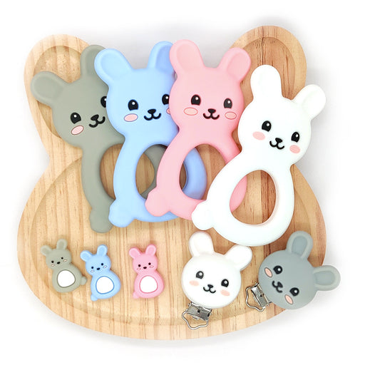 Silikonclips med motiv "bunny".Clipset är i BPA-fri silikon samt nickel- och rostfri metall.Storlek på haren är ca 38 x 42 mm.Priset avser 1 st, ...