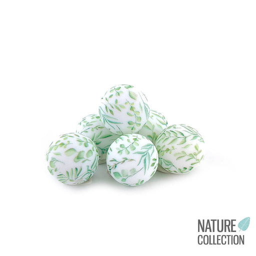 Runda silikonpärlor med grönska print, 100% BPA-fri.Ur LilyTigers Nature Collection 🌿Diameter är ca 15 mm.Håldiameter är ca 2 mm.Priset avser 1st p...