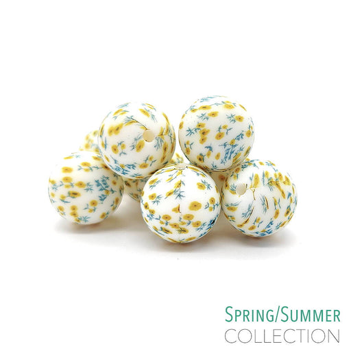 Runda silikonpärlor med blomster / sommaräng print, 100% BPA-fri.Tillhör LilyTigers härliga Spring/Summer Collection 🌱Diameter är ca 15 mm.Håldiame...