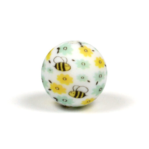 Runda silikonpärlor med blommor och bin print, 100% BPA-fri.Tillhör LilyTigers härliga Spring/Summer Collection 🌱Diameter är ca 15 mm.Håldiameter ä...