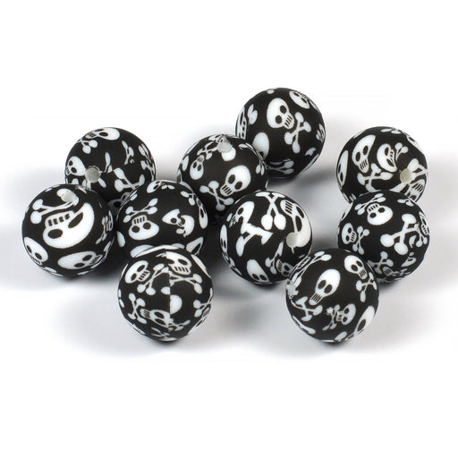 Runda silikonpärlor med döskalle print, 100% BPA-fri.Perfekt till Halloween!Diameter är ca 15 mm.Håldiameter är ca 2 mm.Välj önskad antal i menyn.T...
