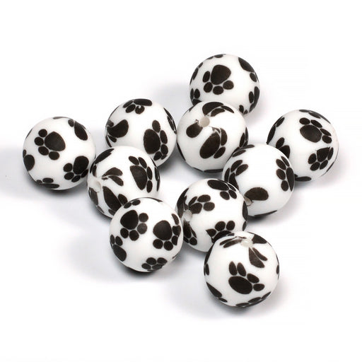 Rund silikonpärla, vit med svarta tassar, 100% BPA-fri.Diameter är ca 15 mm.Håldiameter är ca 2 mm.Priset avser 1 st.Tänk på att alla mönsterpärlor...