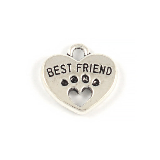 Antikt silverfärgad berlock i hjärtform med tass och texten "Best Friend".Samma motiv på båda sidor.Storlek är ca 15 x 12 mm (plus ögla).Tjocklek ä...