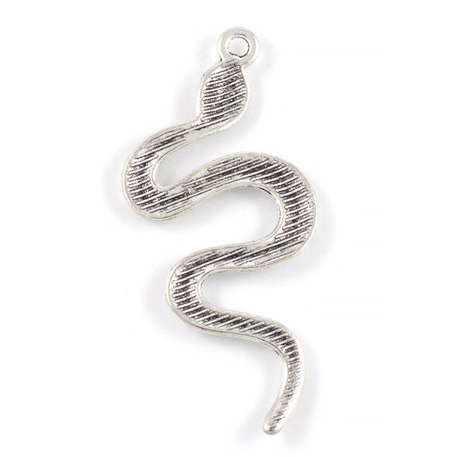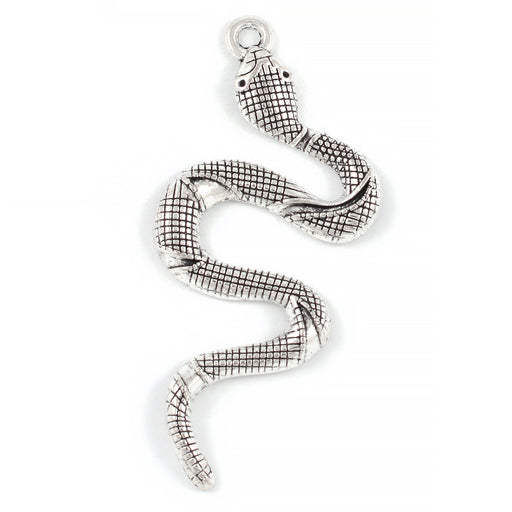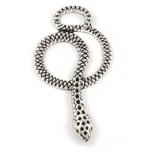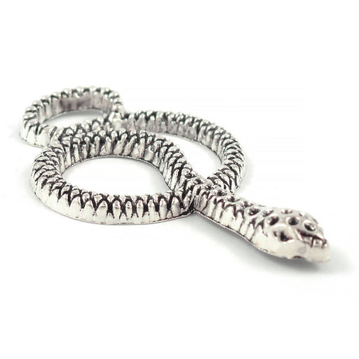 Större, antikt silverfärgad berlock, orm.Storlek är ca 24 x 49 mm.Tjocklek är ca 2,5 mm.Håldiameter är ca 2,5 mm.Priset avser 1 st.Ej lämplig för b...