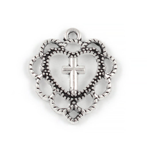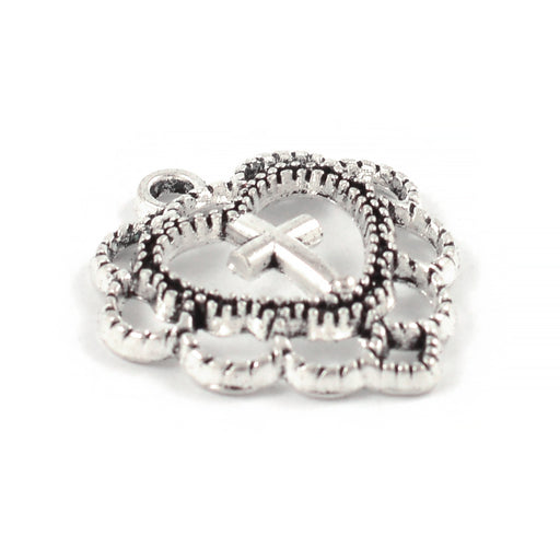 Visa fullständig informationBerlock, filigrant hjärta med kors, antiksilver, 20x19mm, 4st