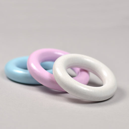 Träring utan borrhål.Färgen är giftfri och salivbeständig.Uppfyller kraven enligt DIN EN 71-3 och EN 71-9.Diameter på utsidan är ca 50 mm.Innerdiam...