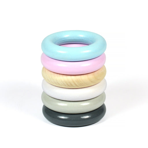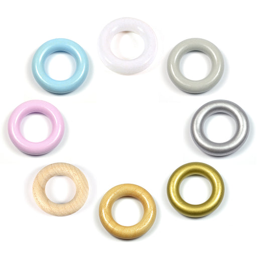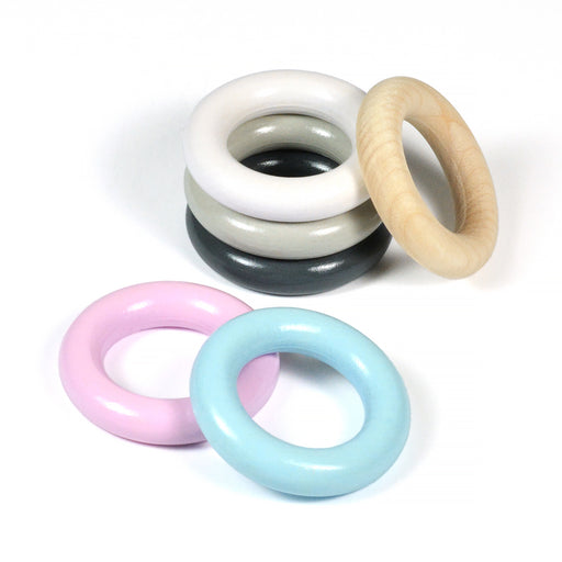Träringar utan borrhål.Färgen är giftfri och salivbeständig.Uppfyller kraven enligt DIN EN 71-3 och EN 71-9.Diameter på utsidan är ca 50 mm.Innerdi...