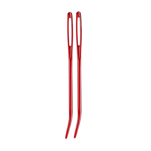2st röda stoppnålar i aluminium och med böjd spets för montering av exempelvis virkade eller stickade skapelser. Längd på nålarna är ca 70 mm....