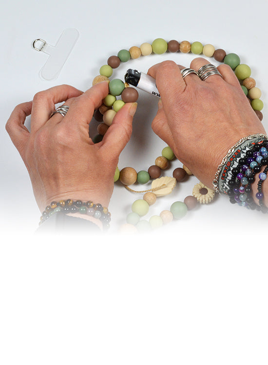 Längden kan du anpassa enligt dina egna önskemål, om du vill kunna ha bandet runt halsen eller om du vill ha ett kortare hänge till din mobil.